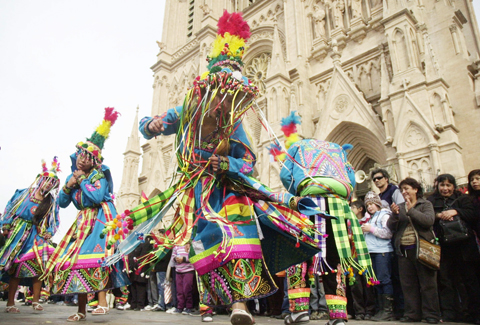 Después del mediodía, cuando tuvo lugar la misa central, los visitantes desplegaron todo el color que caracteriza la muestra de fe. Los danzarines, llegados desde distintos puntos del país, mostraron sus dotes para el baile con la música de trompetes, trombones, cornos y redoblantes. En distintos sectores de la zona basilical confluían los sonidos del altiplano andino con base de cumbia.