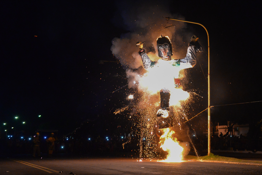 En ese muñeco de inmensas proporciones que las llamas consumieron están representados los pecados, el egoísmo o la soberbia que cada uno quiere destruir en la fecha, para reemplazarlos por una forma de vida signada por el amor y la comprensión hacia sus semejantes. En cuestión de segundos, la bengala voló rauda en busca del muñeco colgado frente a la Terminal de Ómnibus y, tras una breve explosión, fue ganado por el fuego.
