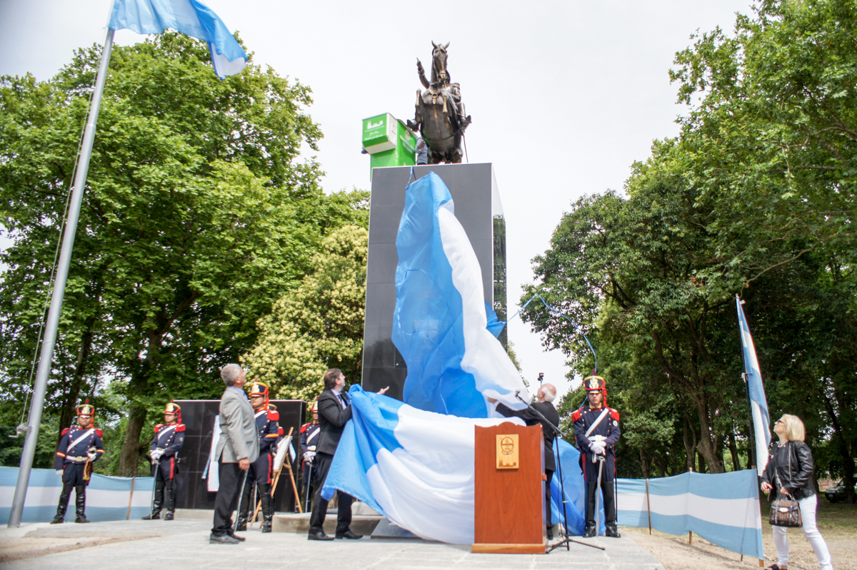 A las 10.21 de este jueves quedó descubierto el monumento ecuestre al general José de San Martín. La escultura fue levantada en el centro del parque que lleva el nombre del “Padre de la Patria” y mira hacia el este como dándole la espalda a la Cordillera de los Andes, a Chile y Perú, donde el libertador fue clave en la independencia de estos países.