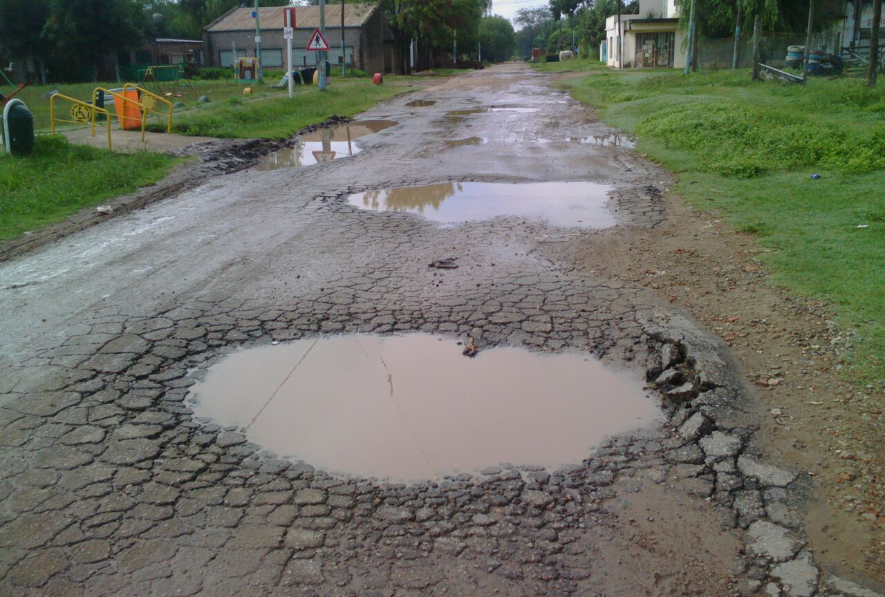 Calle principal del barrio San Jorge, por donde pasa el colectivo. Con la lluvia del lunes, el martes quedaba al desnudo el estado de deterioro que tiene esta arteria. Si así está esta cuadra de asfalto, es fácil imaginarse cómo estaban las calles de tierra.