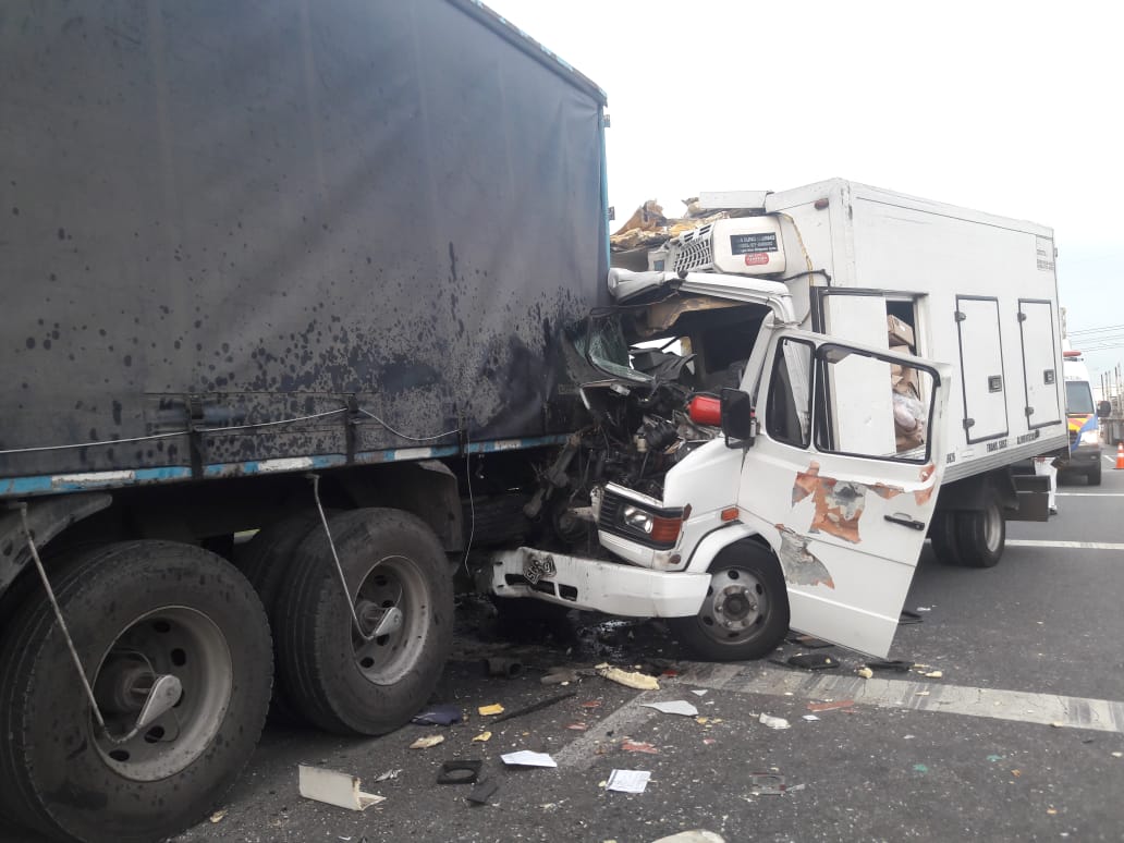 Lo cierto es que un camión Mercedes Benz 710 con caja térmica que transportaba carne de porcino colisionó de atrás a otro camión marca Ford modelo 1722 blanco con acoplado cargado de galletitas que se encontraba detenido en la banquina.