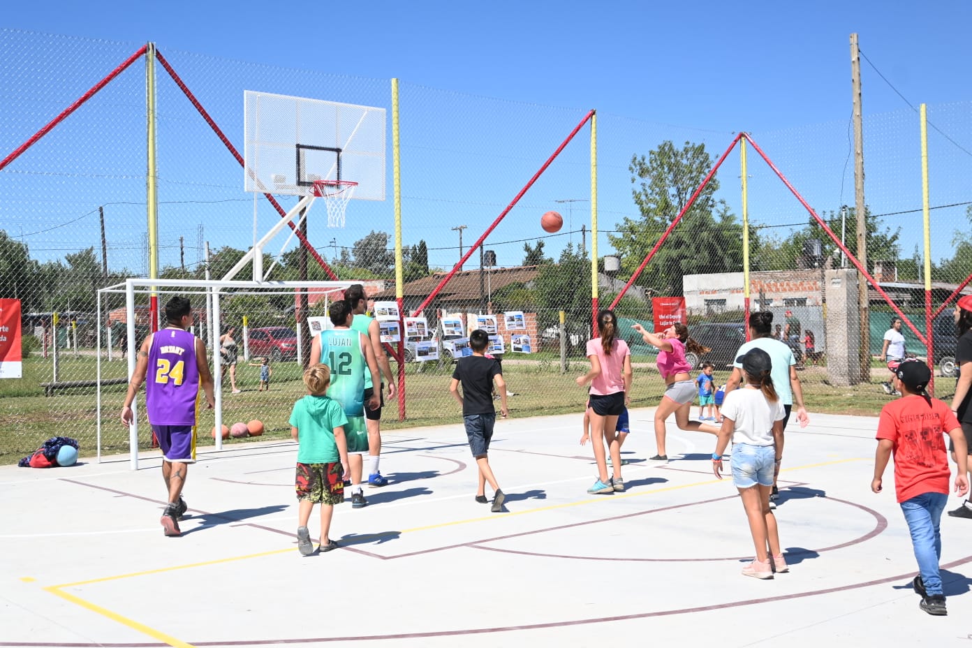 También se sumó a la inauguración la murga La Telesita y los miembros de Street Basket Luján, que realizaron una clínica de básquet para los chicos y chicas del barrio.