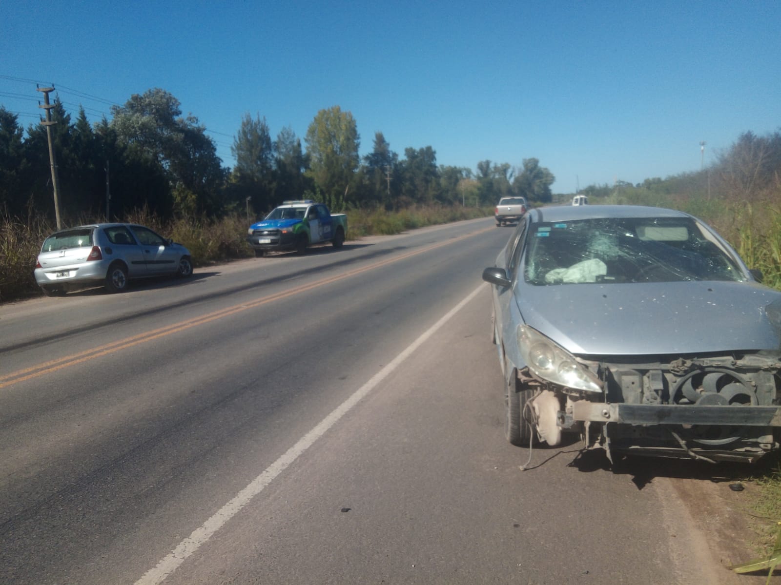 Dos de los autos que participaron del accidente son un Renault Clío y un Peugeot 307. Intervinieron bomberos voluntarios y efectivos policiales.