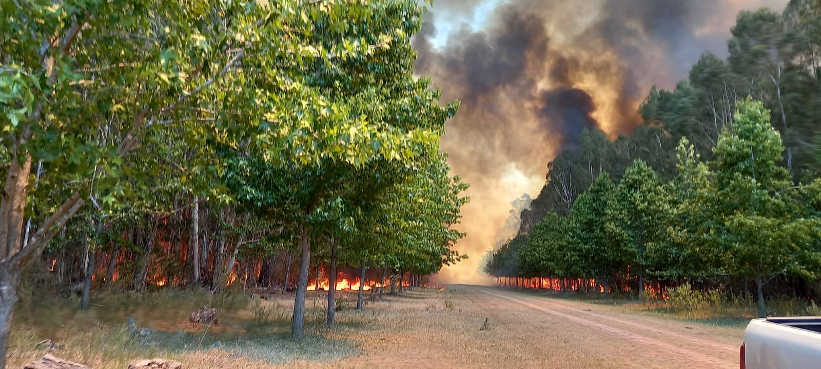 Desde este mediodía los Bomberos Voluntarios trabajan intensamente para poder controlar un incendio de grandes proporciones en la Estancia Santa Elena ubicada en la zona de Pueblo Nuevo.