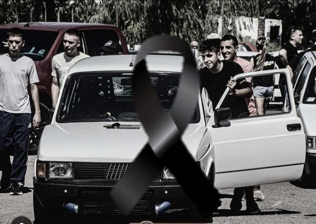 En las publicaciones puede verse una foto en blanco y negro en la que está Tomás sonriente al lado de su auto, un Fiat 147, adaptado para correr picadas y superpuesto un crespo negro en señal de luto. Sus restos fueron inhumados este miércoles en el Cementerio Parque Los Pinos.