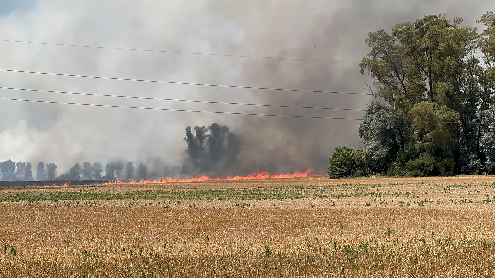 Puntualmente, se quema un campo ubicado entre la cantera ubicada en el barrio Loreto y el barrio Luna. Al parecer, las llamas se iniciaron por la quema descontrolada de basura a la vera de la Autovía 5.