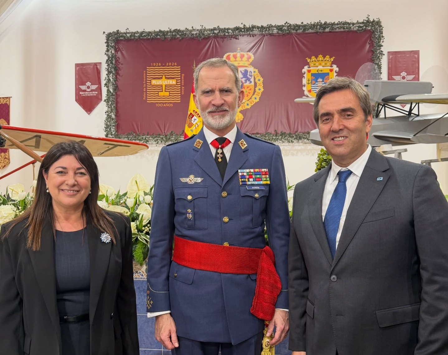 Del acto central participaron el rey de España, Felipe VI; el Ejército del Aire y del Espacio; autoridades de la Fuerza Aérea Argentina; la alcaldesa local y representantes regionales.